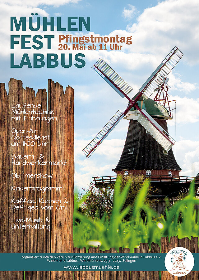 Der Mühlenverein Labbus plant aktuell die 16. Auflage des großen Mühlenfests am Pfingstmontag, 20. Mai 2024 rund um die historische Windmühle.